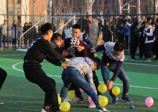 为庆祝元旦,我院特此举办元旦狂欢周。2017年12月25—12月26日,狂欢周的第一个活动“星球”大战,在同学们的欢呼声中落下帷幕。在比赛场中,哨声吹响后,一场别开生面的踩气球大赛开始上演。有的同学像小猴子似的窜来窜去,逃离魔爪;有的像一头凶猛的狮子找的好吃的似的,扑向“猎物”。有的同学左躲右闪,拼命保护自己的球,有的同学死死的盯着敌方的球,寻找机会,好像要用眼神把它们射破似的。比赛场地不断的发出气球爆炸声,像是鞭炮齐鸣。经过激烈的角逐,终于迎来了决赛的最终局面。那么下面就让我们来看看我们这些阳光少年如何"玩"得嗨吧~~