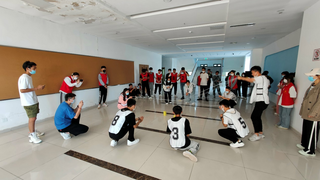 最后一个环节是团队闯关活动。由各二级学院师生组成的五支队伍进行团队闯关,一共设置五个关卡,既有考验智力的数独游戏,也有考验体力的齐心协力跑,更有需要我们团队成员团结合作的车轮滚滚、合力建塔、一圈到底。各个队伍暗中较劲,相互配合,都在为赢得比赛而努力。活动结束后,我们为五支队伍进行颁奖,并合影留念。