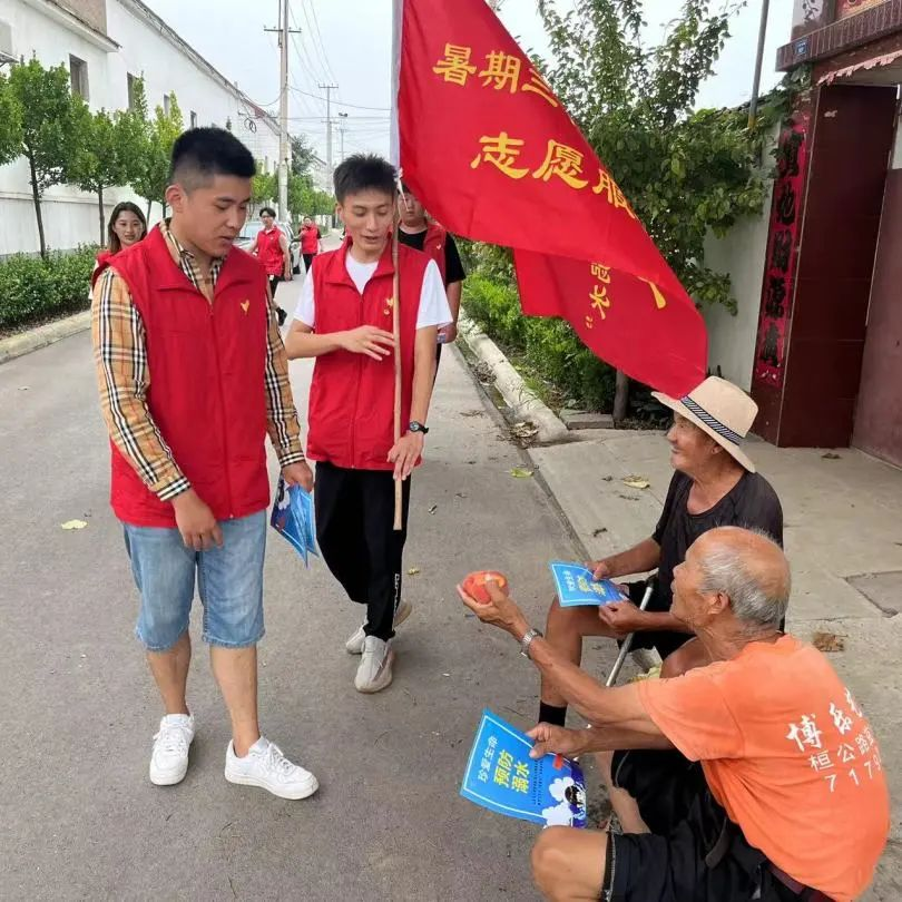 7月19日上午,山东化工职业学院组建的暑期“三下乡”爱心志愿服务小队前往王青村,开展“大手牵小手,安全你我他”暑期“三下乡”溺水救援知识宣讲活动。