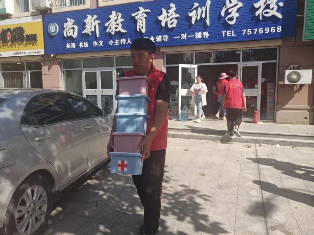 2019年8月29日“利奇马”台风过后,鸢都大地,天高云淡,碧空如洗。我院爱心志愿服务队志愿者跟随潍坊滨海爱心义工到寿光市受灾严重地区分发捐赠物资。