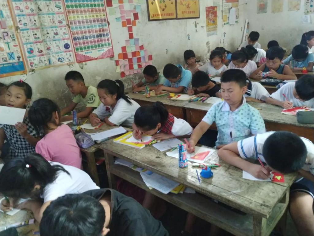 刘庙村今天的课程为感恩孝亲、风筝制作,上课后,我院志愿者引导小朋友们分享回家后帮家长们做了什么有意义的事情,小朋友们一个个从自己的座位上站起来分享自己做的有意义的事情,小朋友们给爸爸妈妈搓背、洗碗、拖地,以及做完事情有什么感受和收获。课堂上,小朋友们观看了一部关于“空巢老人”的视频,并积极分享了通过视频得到的感悟,回答了对于“爱”与“陪伴”的认识。小朋友们纷纷表示要孝顺家人、感恩父母的养育之情。最后,感恩孝亲课程在合唱“感恩的心”中结束了。下午,进行风筝绘制课程,按小组进行绘制,表现出了孩子们之间的合作及团结能力。