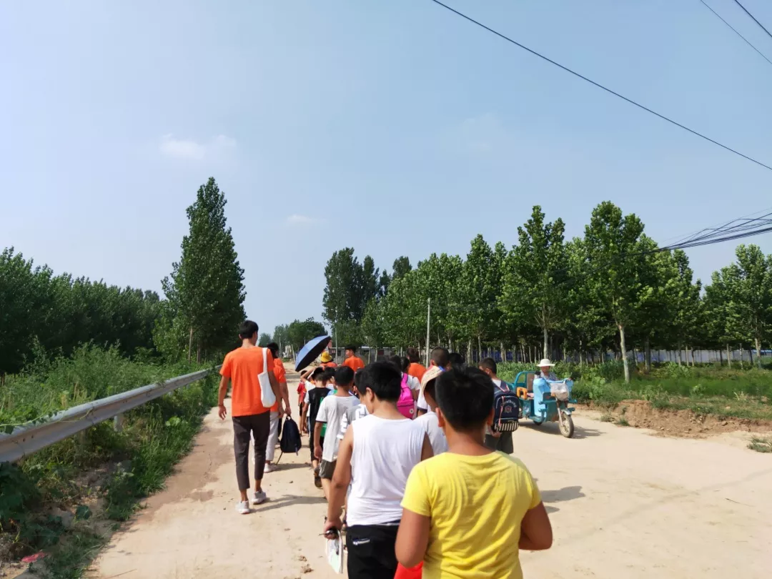 开课第二天,家长把孩子们送到刘庙村委会,等孩子们集合完毕后,我院志愿者们徒步带领孩子们到达刘庙小学。走在路上,迎面的风似热浪扑来,孩子们没有一丝不快,秩序井然的排队前行,志愿者们各自在孩子们的四周跟着,以确保孩子们的安全。