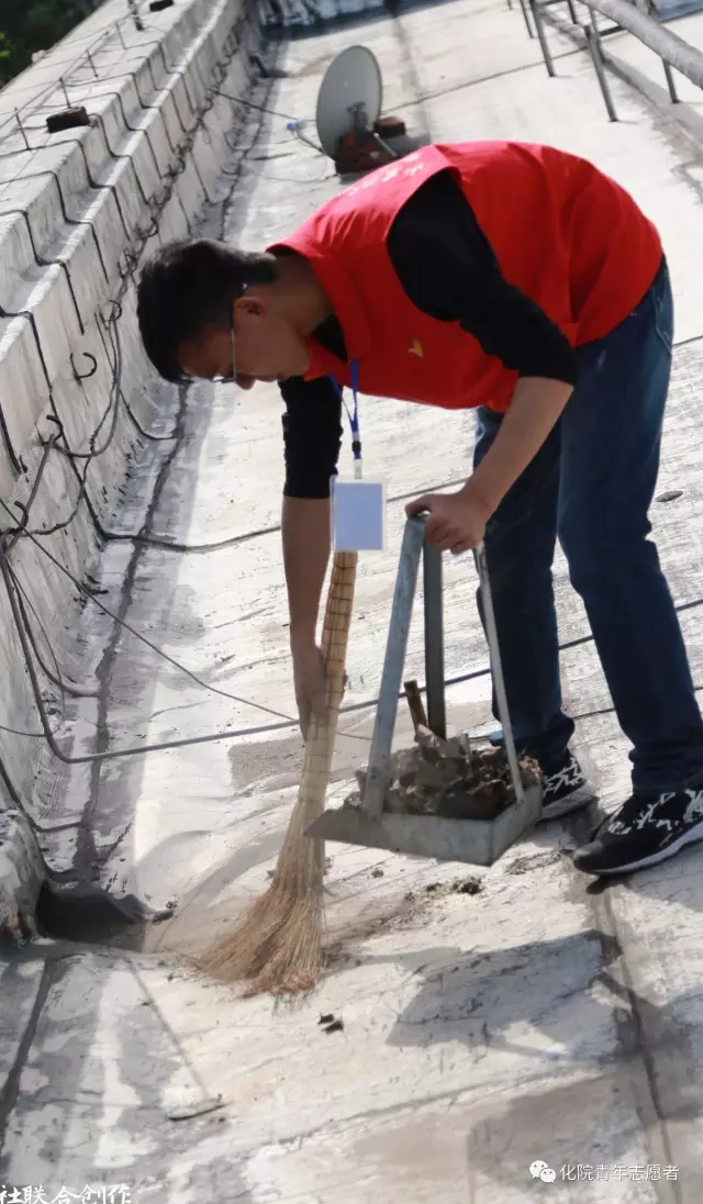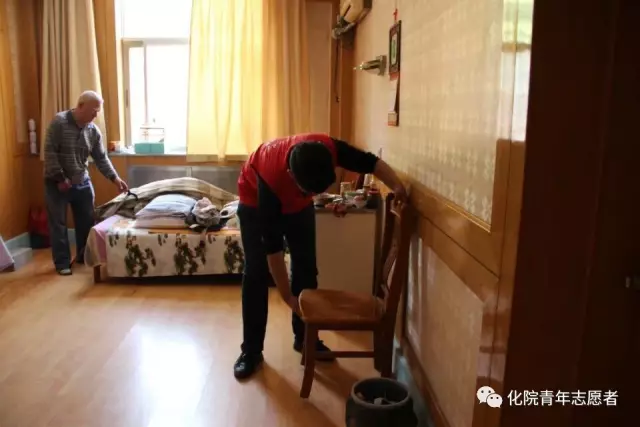 义演结束后,青年志愿者们分成小分队帮老人们扫院子、去除杂草、刷楼梯
