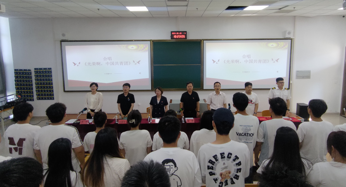青马工程班主任李昂老师宣读《关于批准山东化工职业学院2024年第一批新发展团员名单的决定》。