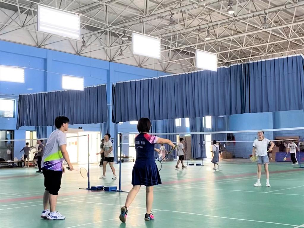 为丰富学生的文体生活,提高学生的羽毛球运动水平,2021年6月2日下午,羽毛球社团组织12名成员到山东海事学院羽毛球场进行集体活动。