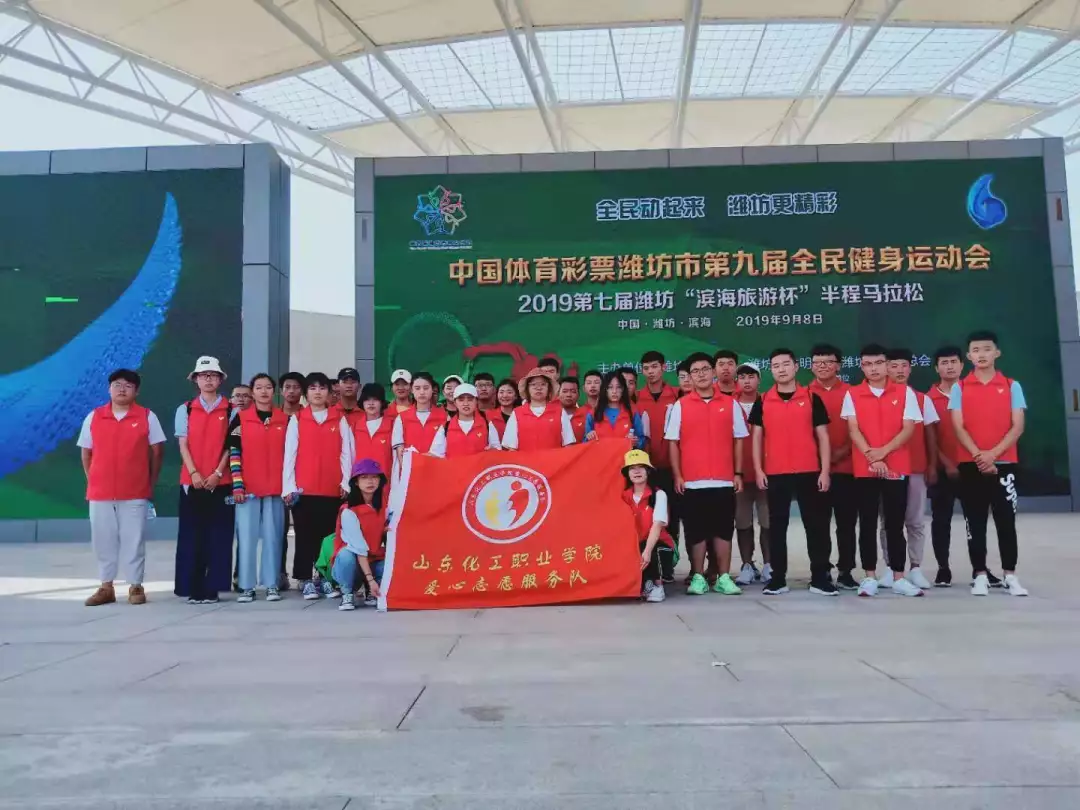 2019年9月8日,第七届潍坊“滨海旅游杯”半程马拉松赛正式开始,我院志愿者们于五点钟在校门口集合去马拉松赛场进行志愿服务