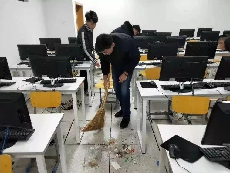 机房作为同学们经常上课的地方,同学经常把食物、饮料等带入机房,所以机房的卫生一直是一个难题,在3月5日晚,化学工程系学生利用业余时间进行志愿者活动,把1301、1302、1303三个机房打扫的焕然一新,让同学们有更干净舒适的学习环境。