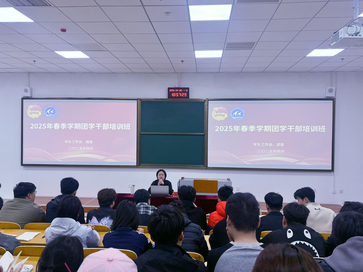 4月8日,我校2025年春季学期团学干部培训班在主校区9号阶梯教室正式开班,校团委书记朱怀红作专题报告,校院两级团学骨干、第四期青马工程学员代表等100余人参加培训。