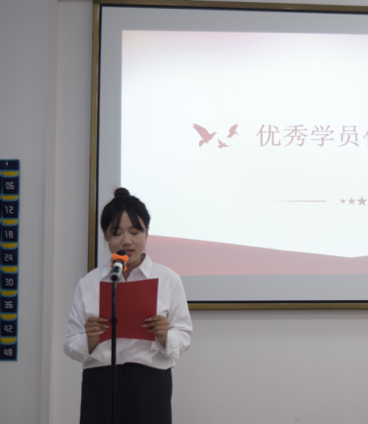 青马工程班主任李昂老师宣读《关于批准山东化工职业学院2024年第一批新发展团员名单的决定》。