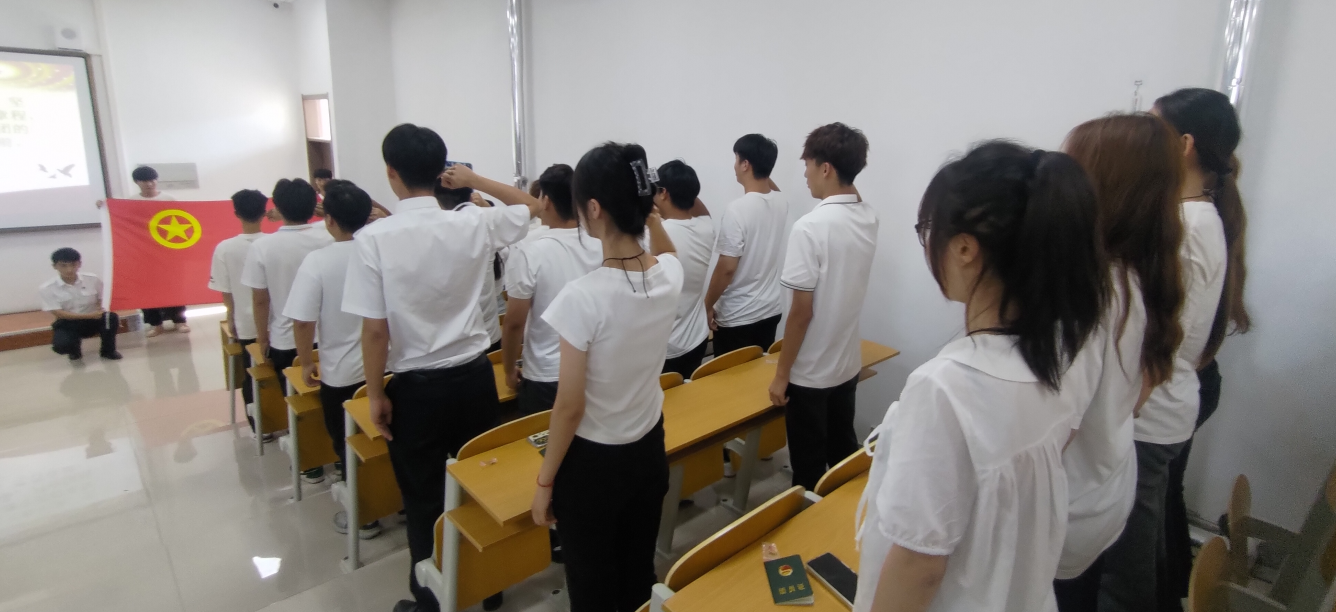 新发展团员进行入团宣誓,领誓人:管理工程学院王文杰同学。