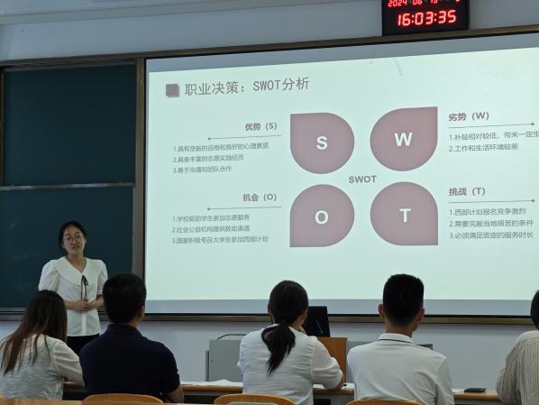 评委老师在点评中指出,各位同学的职业生涯规划书展现了极高的专业性和前瞻性,对于自己的兴趣、能力和未来职业方向有着清晰的认识,并在规划书中详细地列出了自己的短期、中期和长期目标,不仅反映了对于个人发展的深思熟虑,也展示了对于未来职业生涯的积极态度。