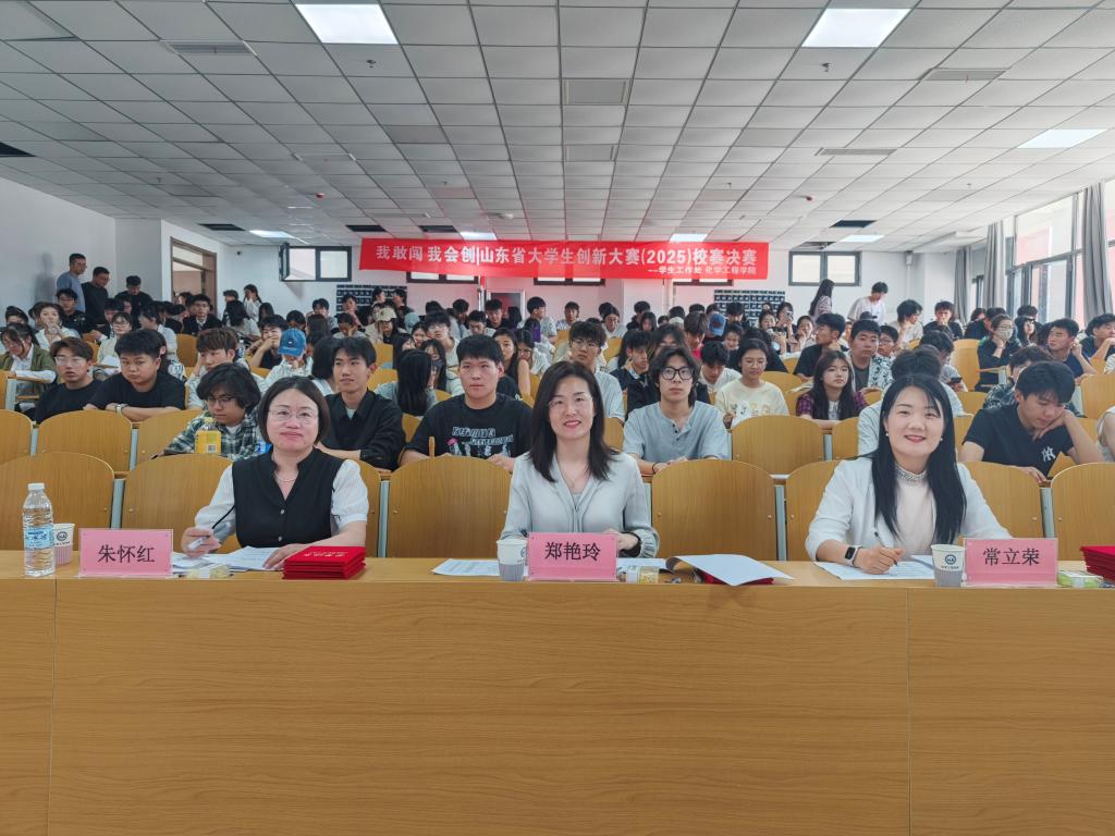 近日,学校在主校区阶梯2教室举行山东省大学生创新大赛(2025)校赛决赛,本次比赛由学生工作处主办,化学工程学院承办。教务科研处副处长郑艳玲、学生工作处副处长朱怀红、培训处干事常立荣担任本次比赛评委,参赛项目团队成员及指导老师,各二级学院创新创业分管领导以及学生代表参加。