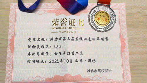 近日,潍坊市羽毛球联赛圆满落幕。我校羽毛球社团学子凭借精湛球技与顽强斗志,在赛场上奋勇拼搏,最终不负众望,斩获多项荣誉,为校争光!