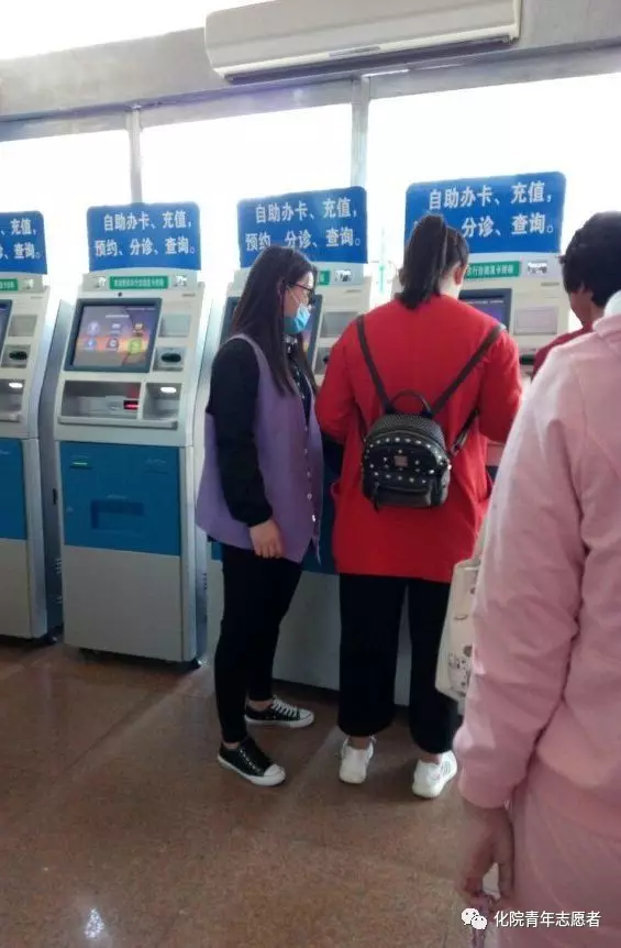 引导不会用就诊卡自助服务机的人使用自助服务机器。