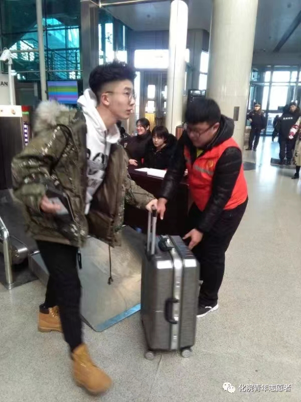 2017年12月31日,元旦假期第二天,许多同学都在享受假期生活,与朋友、家人聚餐。然而学院志愿者7名志愿者早晨7:10在学院门口集合,去赶7:30的90路公交车到潍坊站去做服务。到了站牌后,等了一个小时的时间,90路公交车车迟迟没来,我们乘坐15路车来到潍坊职业学院(滨海校区)等了20多分钟还没有来,志愿者们垂头丧气,冻得直打哆嗦,没有一个志愿者打退堂鼓,我说:“我们先去商业街去吃早晨,一会再过来等车,” 去吃饭的路上大家大家相互鼓励,相互关心,更加坚定了我们去的信念。商业街几乎所有的店没有开门,几经周折,在兰州拉面每人吃了一份面,吃完后,我们再次来到潍坊职业学院(滨海校区),等了一会我们坐上了BH4到央子车站,从央子车站坐78路来到火车站。到火车站快12:00了,由义工王劲松带我们进站、到志愿者办公室换衣服,纪老师给我们做了一个简单的培训后立刻走上岗位去服务旅客。