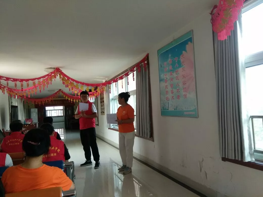 到达目的地后,由潍坊爱生活社会工作服务中心的几位老师带领我院志愿者们学习服务前的行为规范,为陪伴老人做好充分的准备,按照有经验的人带无经验的人的方式分成了几个小组。在做了一些准备活动后,服务开始,志愿者们按照分组跟着带队老师走进了指定的房间,志愿者们秉着不分析、不评判、不下定义的原则用真心去陪伴老人。