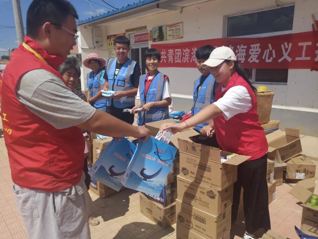 2019年8月29日“利奇马”台风过后,鸢都大地,天高云淡,碧空如洗。我院爱心志愿服务队志愿者跟随潍坊滨海爱心义工到寿光市受灾严重地区分发捐赠物资。