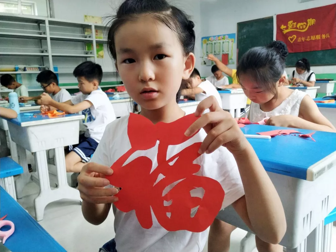刘庙村今天的课程为爱国电影欣赏、传统文化学习。上午,我院志愿者们给小朋友们播放了爱国电影,增强小朋友们的爱国情怀,小朋友们积极发言,发表了他们的意见,说了爱国电影对他们的启发。下午的传统文化剪纸,也是小朋友们最喜爱的课程,在我院志愿者们的辅助下,一双双巧手剪出来了一张张漂亮的福字。
