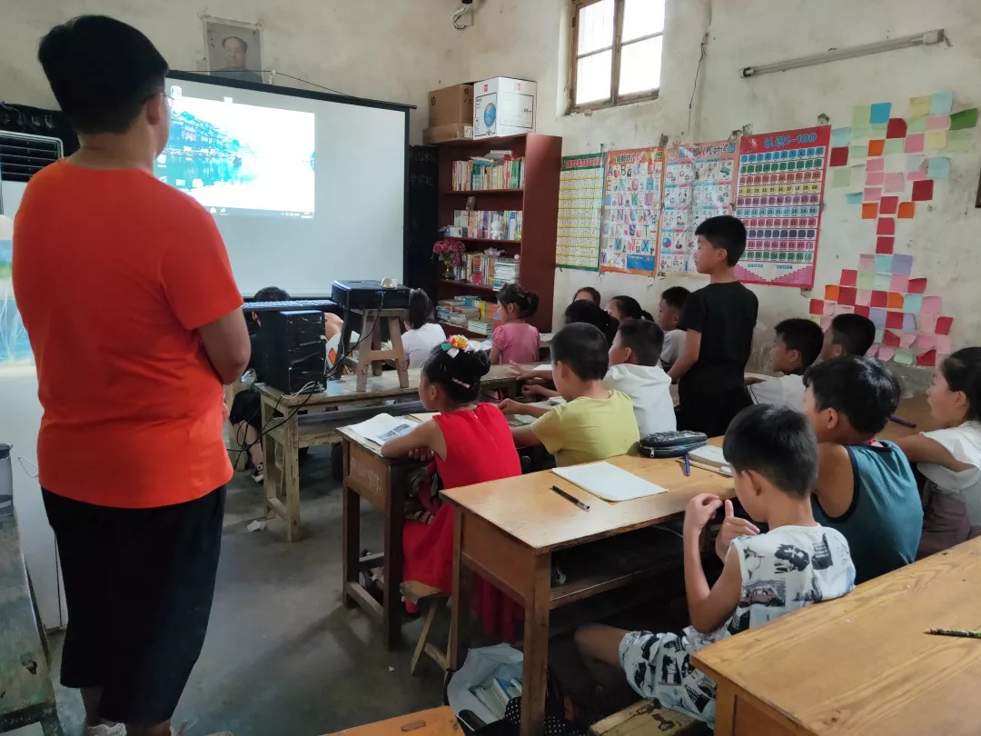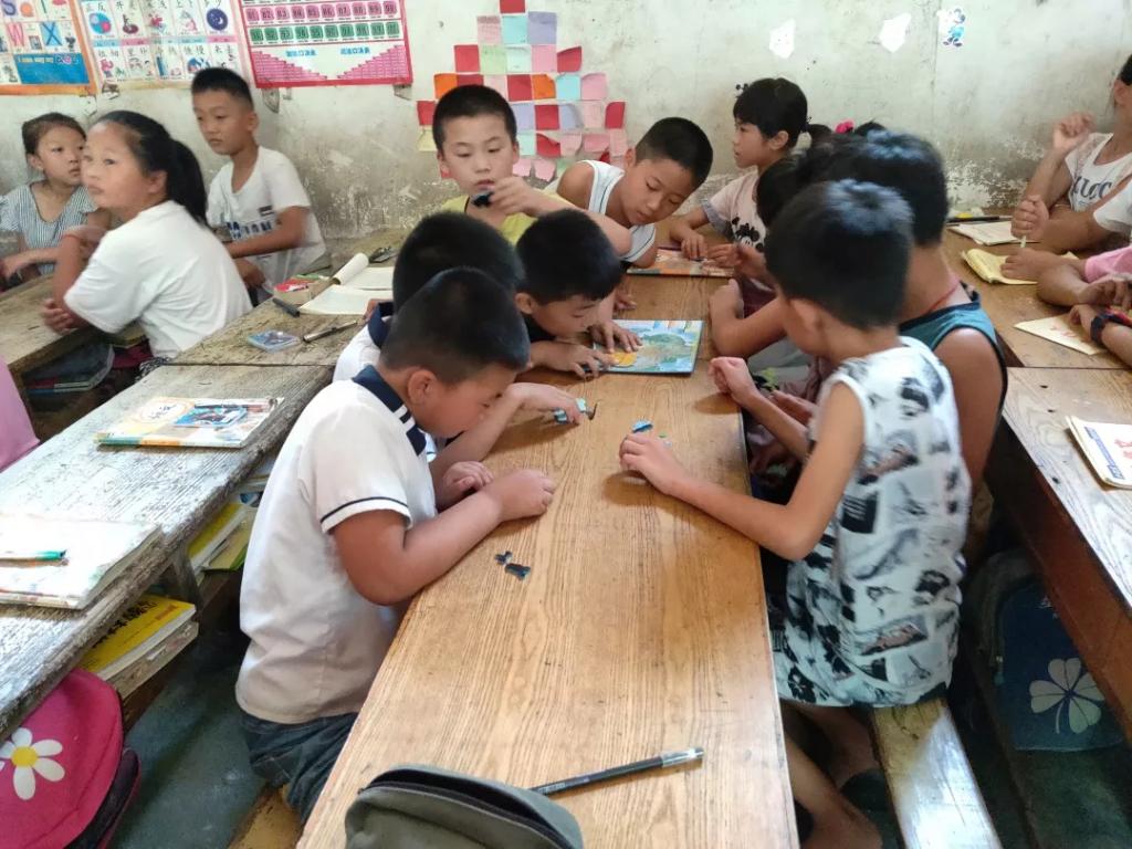 今天刘庙村课堂主题为爱国电影欣赏、手工制作,手工制作之前我院志愿者给孩子们观看手工制作小视频,详细讲解制作要领、步骤及注意事项,同学们开始“忙碌”起来,课堂气氛十分活跃,充分诠释了孩子们的“玩中学”。
