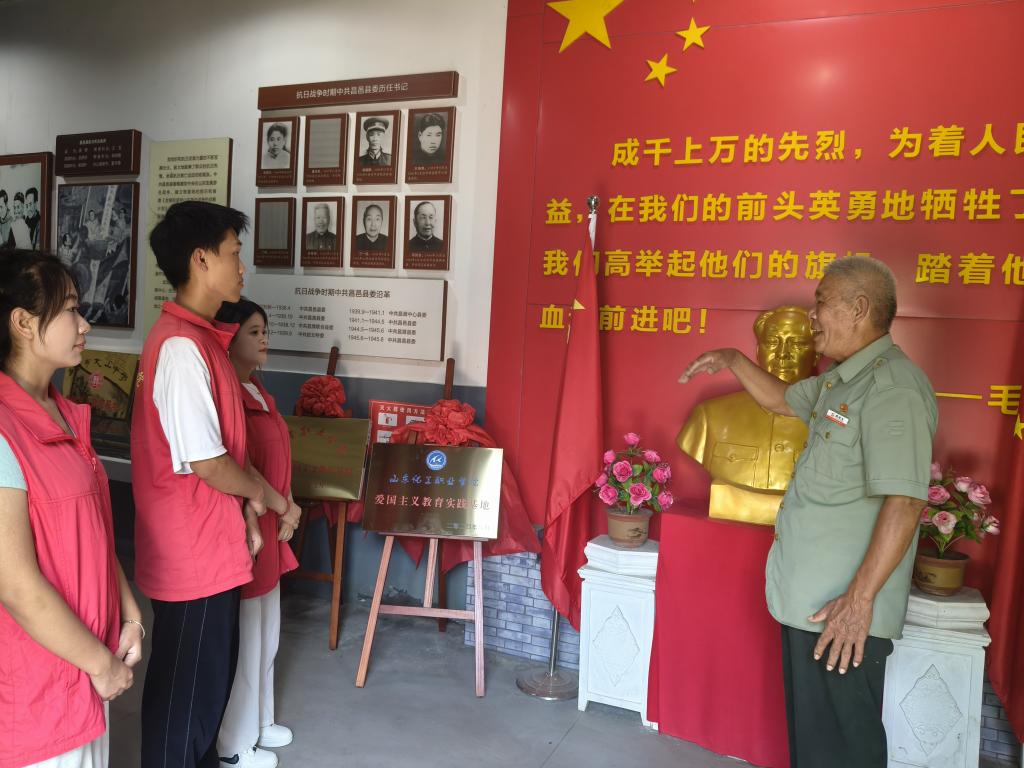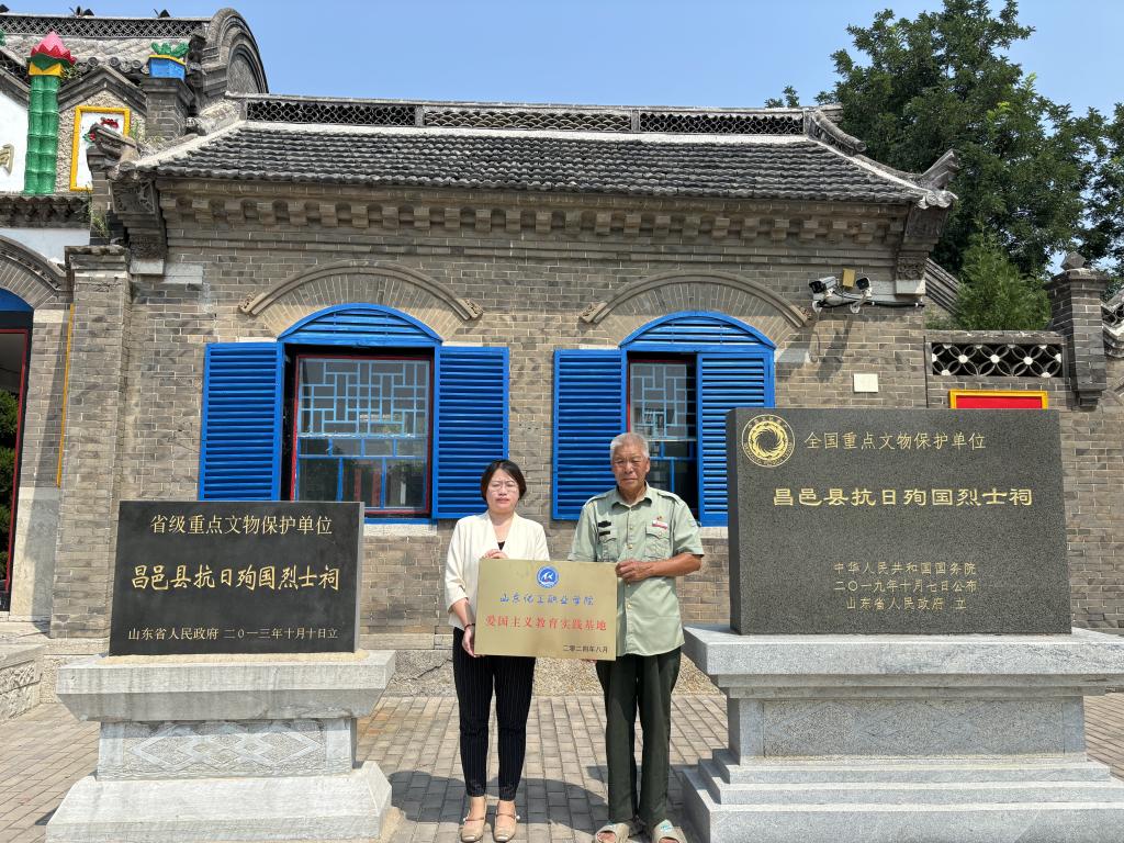 8月24日,山东化工职业学院爱国主义教育基地揭牌仪式在昌邑县抗日殉国烈士祠举行。校团委书记朱怀红、昌邑县抗日殉国烈士祠管理员魏铁良共同为基地揭牌。