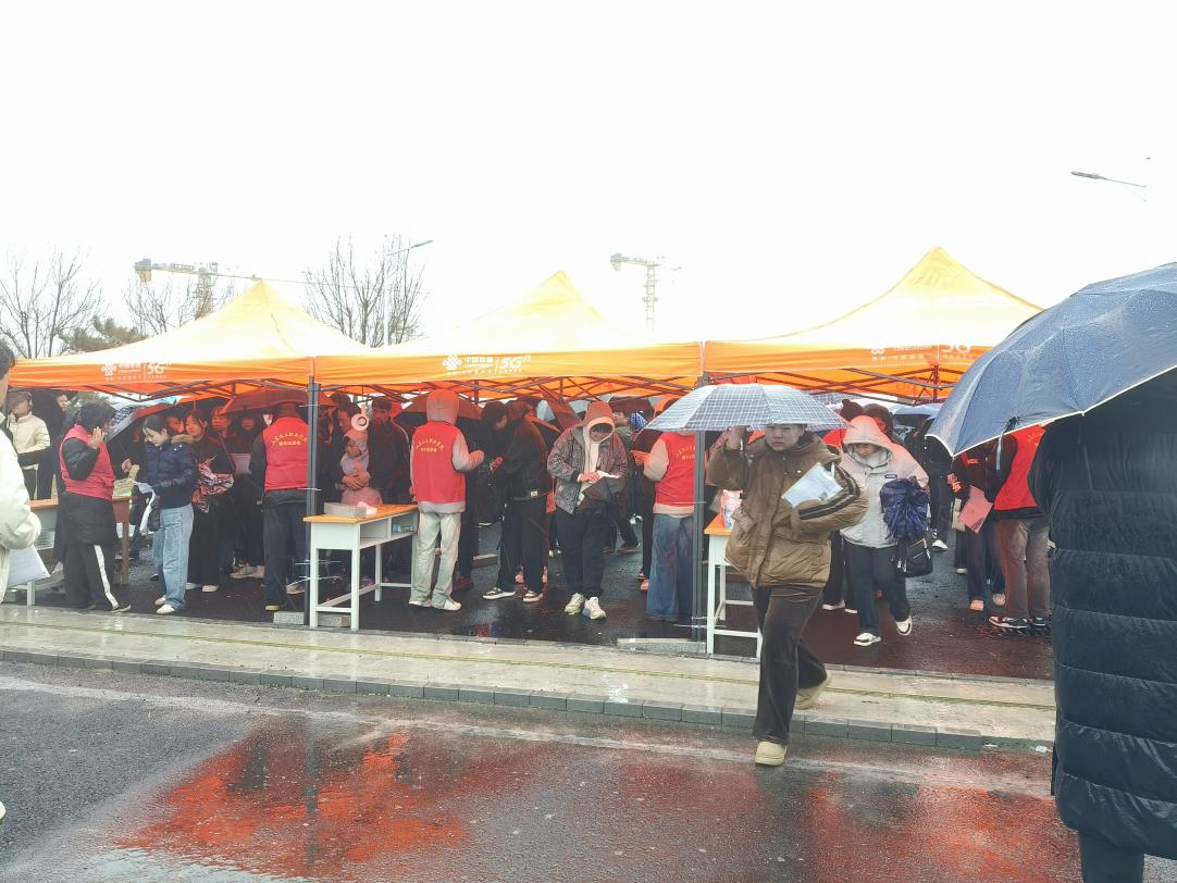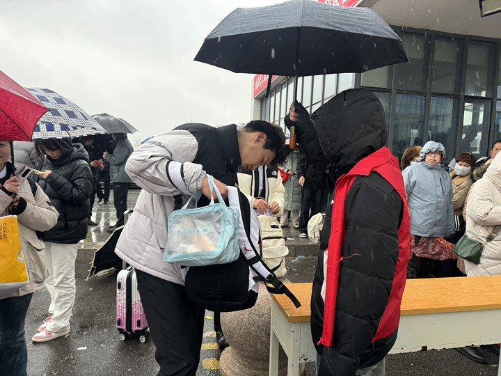 入场处,志愿者们冒雨协助工作人员核对考生信息,引导考生有序进入考场。他们顾不上被雨水打湿的衣衫和冻得通红的双手,始终保持高度的专注,确保入场环节高效无误。