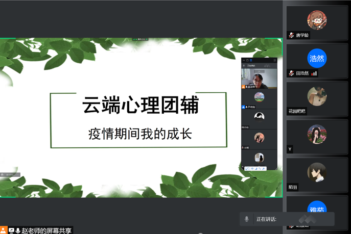 云端心理团辅已经持续开展两个周,近千名同学积极参与互动,由于参与人数过多,无法给每一个同学带来更多的关注,所以本周第三期云端团辅,我们将主题确定后,以二级学院为单位,于周三下午开展四场腾讯会议,并将每场会议人数控制在20人以内,确保每一个同学都能有更好的参与体验。每组各由一位心理老师和一位思政老师共同主持,在做好心理疏导的同时,对同学们进行思想引导。