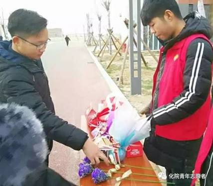 在这次志愿活动当中,有的志愿者说“虽然这是一次义卖活动,但目的也是想让同学们感受到圣诞气氛的。在最开始采购到后来的包装过程中,志愿者们都很努力、很细心的在做。除了平安果我们也有卖手工玫瑰花,花都是志愿者们一个一个做出来的。因为都是要卖出去的,所以每一个小细节都要注意到,苹果不能有坏的,包装也要是完整的。认真和细心,志愿者们也都做到了。”