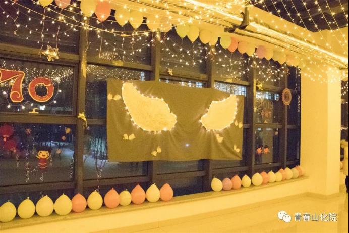 欢乐祥和的氛围缺少不了气球的烘托,更少不了千纸鹤的点缀,各色的装饰增添了许多欢乐,让同学们享受青春、感受快乐。