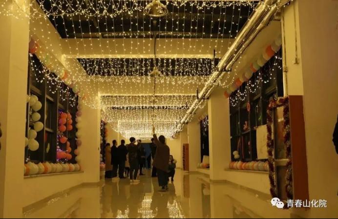 夜色渐浓,山东化工职业学院的霓虹灯渐渐绽放出它们的光彩,灯光将校园照映地如此的绚丽,到处洋溢着节日欢快的氛围。