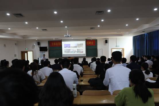 6月5日,万华化学集团股份有限公司招聘经理郭少杰一行6人到山东化工职业学院进行校园专场招聘,招聘会在山东化工职业学院第四多媒体教室举行,310名化工专业的学生参加了招聘会。
