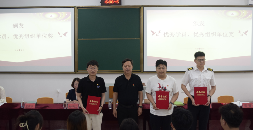 主席台领导、老师为优秀学员代表颁奖。