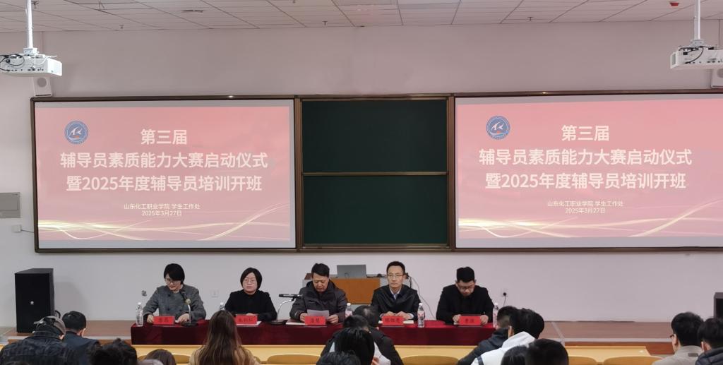 为深入学习习近平新时代中国特色社会主义思想,学习贯彻党的二十大、二十届三中全会精神,全面落实全国教育大会、全国高校思想政治工作会精神及《普通高等学校辅导员队伍建设规定》要求,切实加强我校辅导员队伍专业化、职业化建设,进一步提升我校辅导员队伍理论水平、职业能力和专业素养,充分发挥以赛代训、以赛代练育人功能,3月27日,我校举行第三届辅导员素质能力大赛启动仪式暨2025年度辅导员培训。校党委副书记潘慧出席并讲话,学生工作处全体人员、各二级学院分管领导及全体辅导员、班主任参加活动。