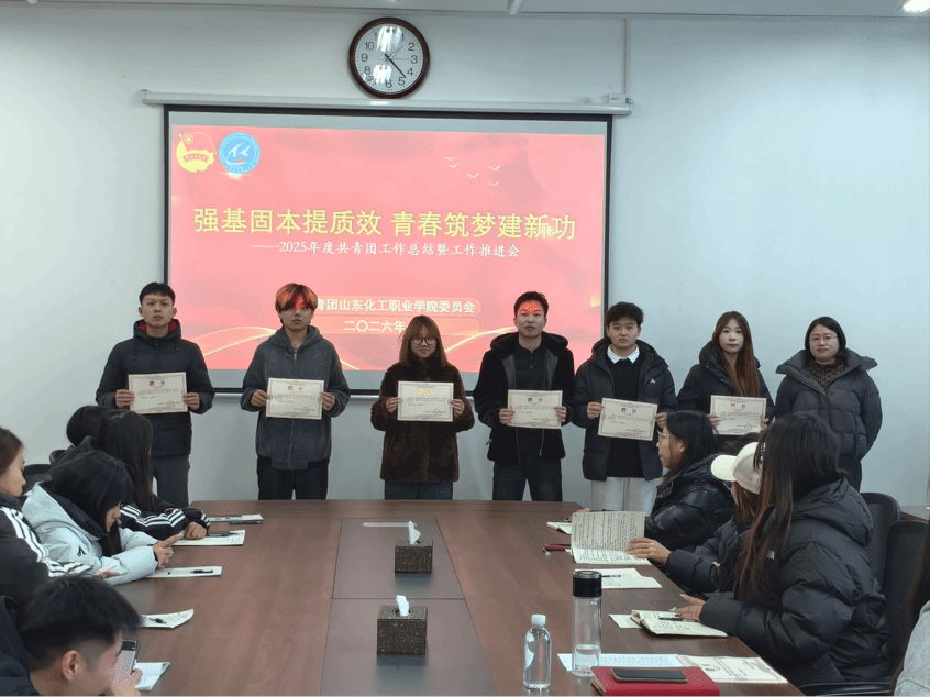 为全面总结2025年度共青团工作成果,精准谋划2026年工作布局,进一步激发团学工作活力、凝聚青年奋进力量,2026年1月5日,山东化工职业学院2025年度共青团工作总结暨工作推进会顺利召开。校团委负责人出席会议并讲话,全体团学骨干及“化语心声”直播团成员参会。