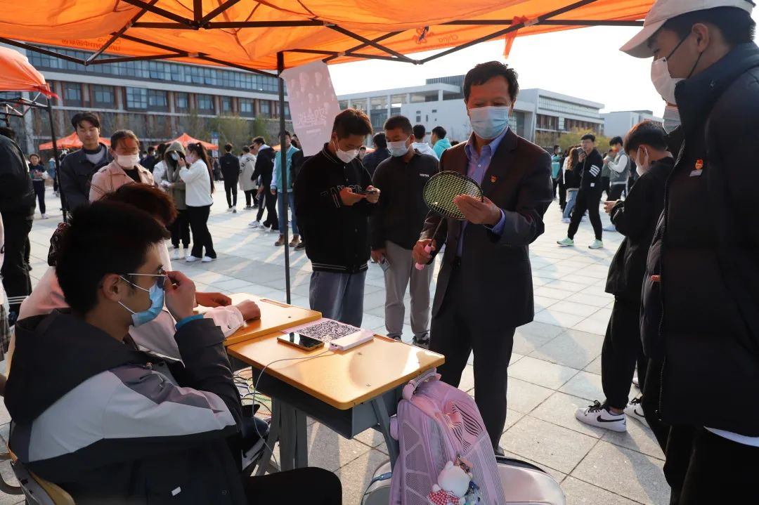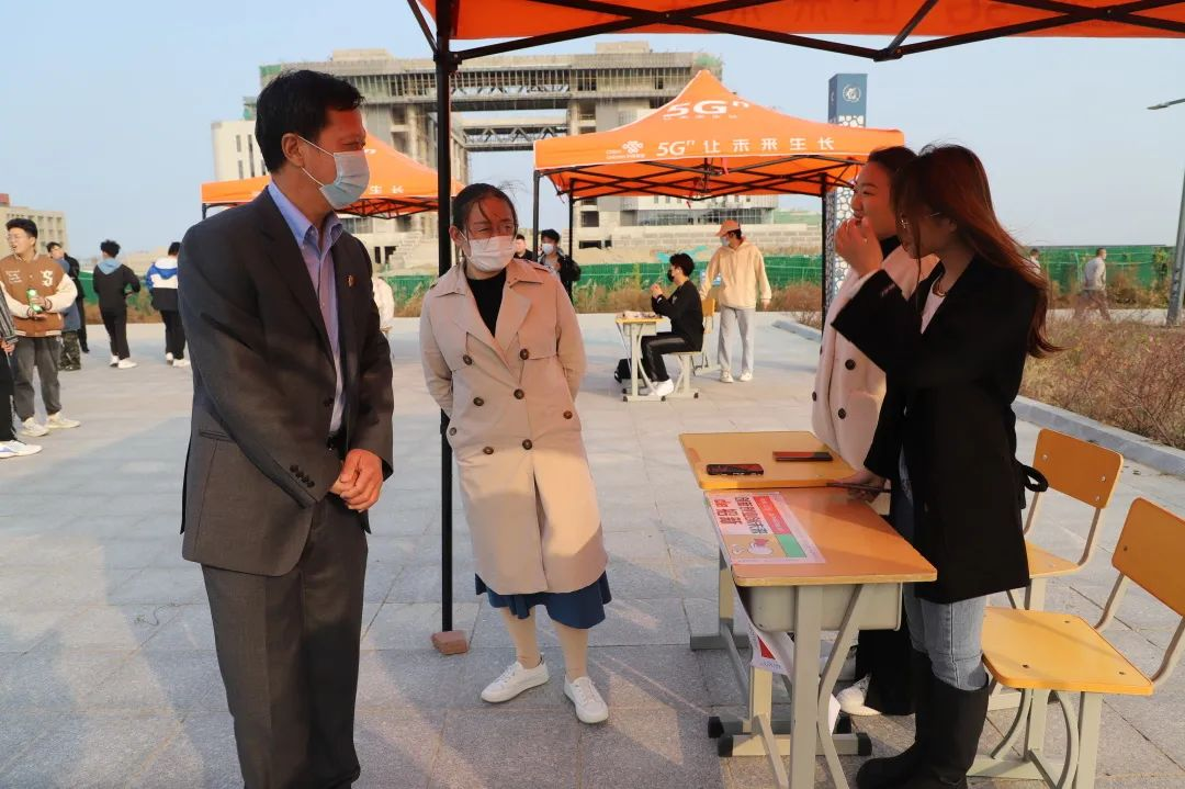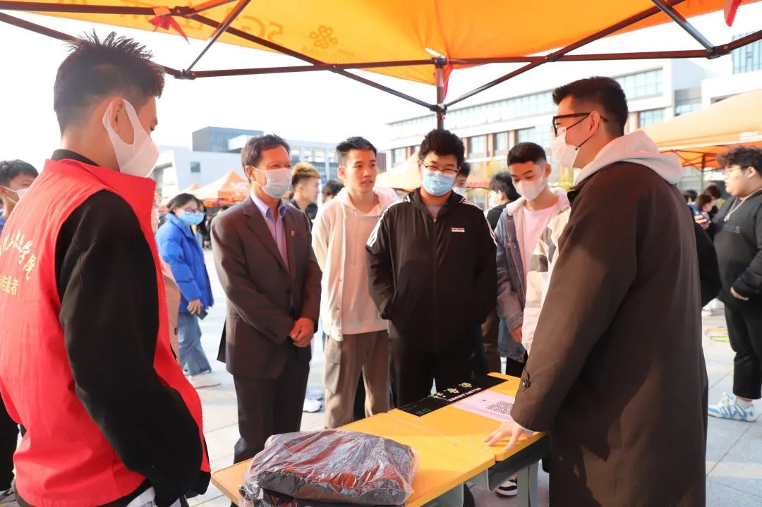 学校党委副书记潘慧和团委书记朱怀红。来到每一个社团摊位前。了解社团的纳新情况和活动开展情况并叮嘱学生们在社团活动中做好疫情防控和注意校园安全