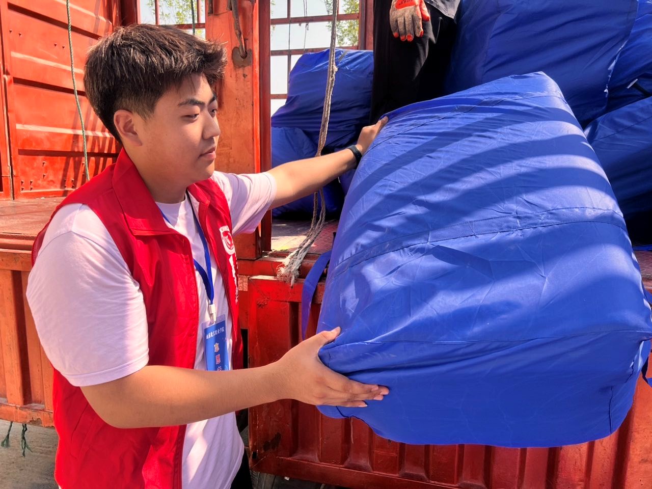 去年我是受学长迎接的新生,今年着红衣当志愿者接新生。接过行囊传递温暖,一句“学长好”,一声“谢谢”,背后是信任,也是循环往复的青春仪式。能成为他们大学故事里第一个引路人,是我的荣幸,更是责任的开始。